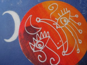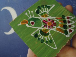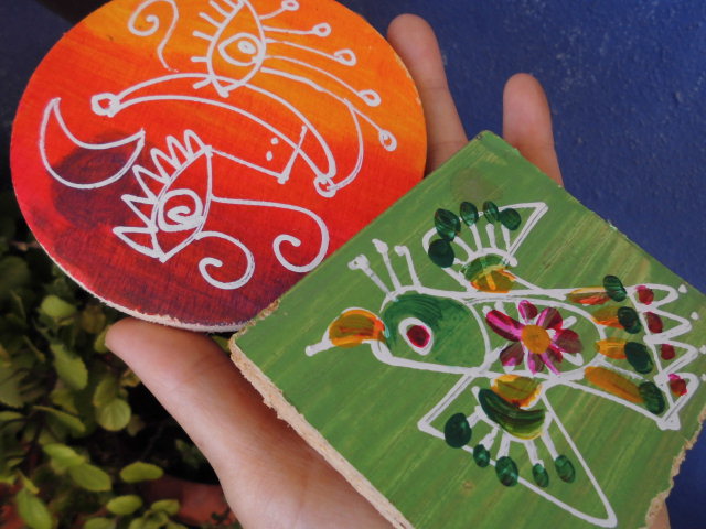 ももギャラリー2014 木のかけら・2 2014-12-07 momoquimidori コメントする 「ももギャラリー」今日は「木のかけら・2」を紹介します。 こうした板にちょこちょこっと描くのが好き。その日の気分で。ほとんど何も考えずに。日記みたいに。 毎日、一日一作も楽しいかも。さっとつかんで描けるように作業テーブルの横にはこうした木のかけらがごろごろしてます。 一見すると、ゴミの山。でもそれが、色と形を与えられて息づき始める瞬間が好き。 木のかけらも、ボトルも石も、カートンもすべてが素材。私の大切な遊びともだちです。 2014-12-07 momoquimidori コメントする