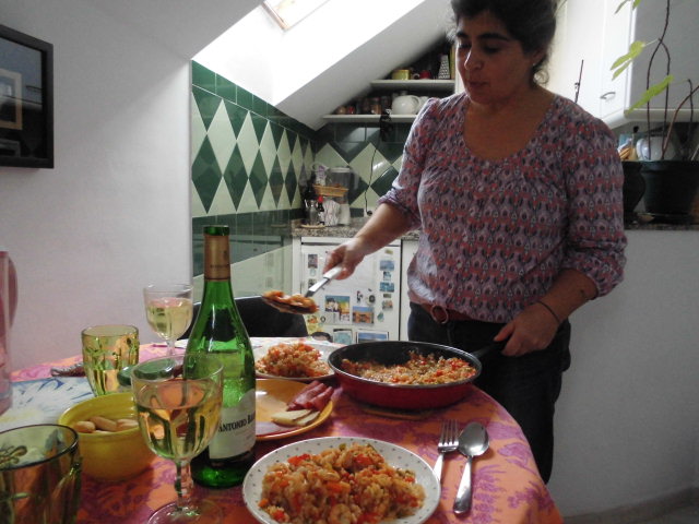 ハム&チーズ、オリーブの実をつまみながらビールで乾杯。