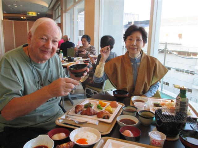 夕食&朝食ともバイキング。うれしそ~なべラ。が、ここでも文化のちがいが発覚。「ゆで卵」と思って割ったら「あれ、これまだ生だよ?」「生でいいんだよ」「???」「ごはんにかけるのー」「ごはんに生卵?ぐえぇー」