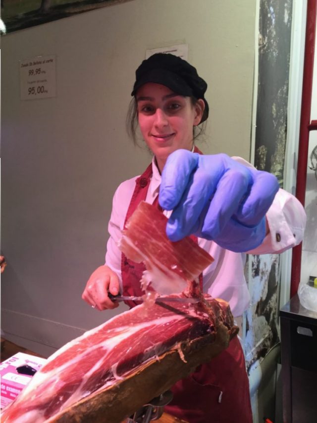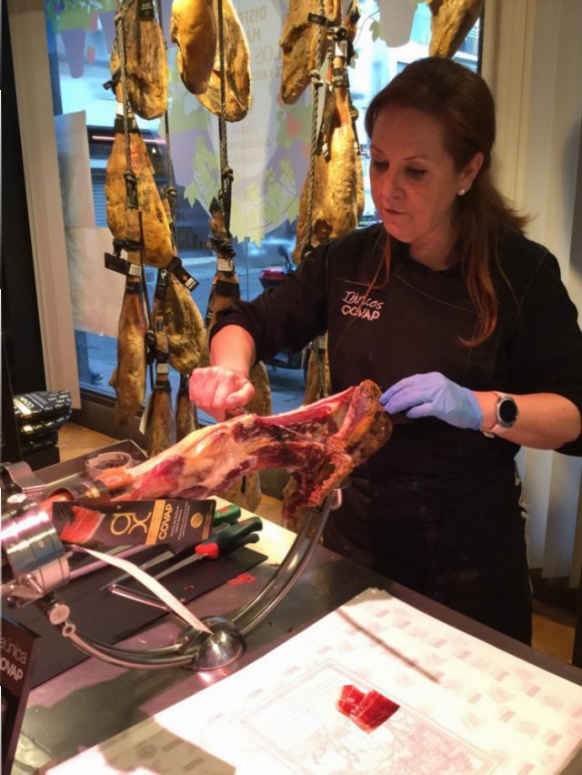 聞いただけで、気絶しそうになる。ふだん私たちが食べているのは、一キロ15ユーロ前後。係のお姉さんがそっと、それは大切に薄切りにしてくださる(写真一、三枚目)。