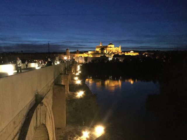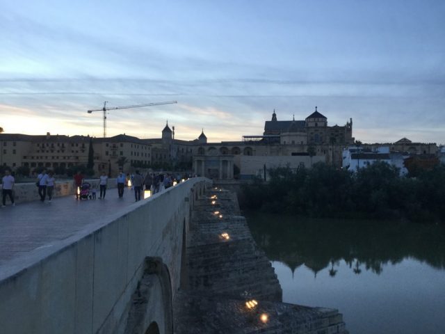 まずは、コルドバのへそ「プエンテ・ロマノ(ロマノ橋)」へ。午後九時でこの明るさ(写真四枚目)。これからいよいよ「バル&レストランのはしご」に出発!