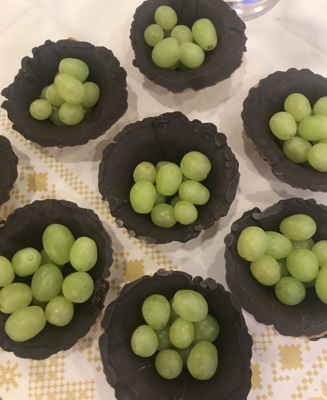 「もも、チョコレートの器にぶどうを入れて。カウントダウン用に1人12粒ずつ」