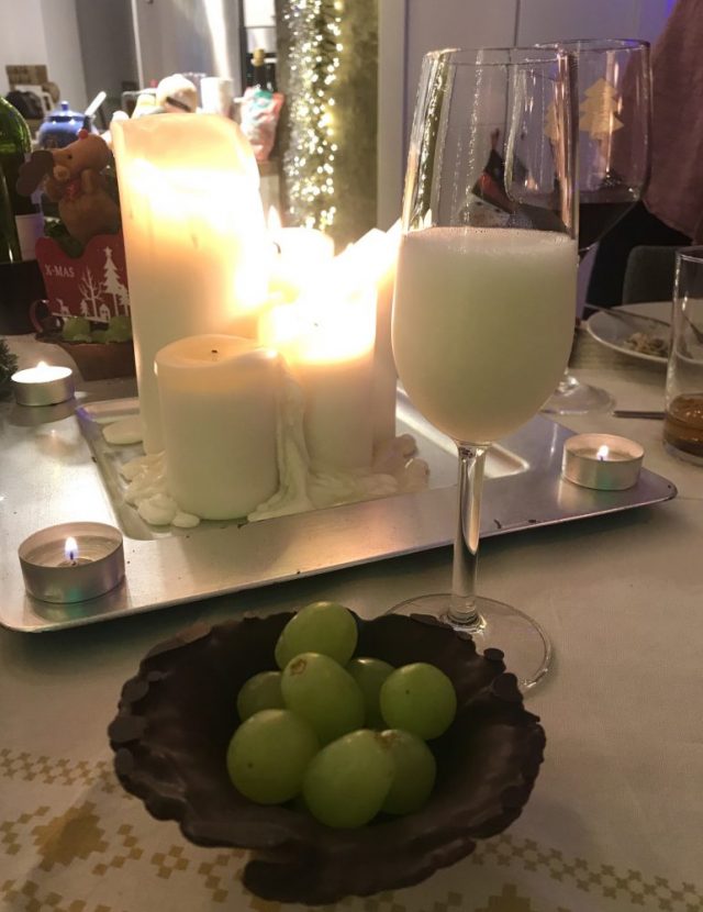 12粒のぶどうを手に、みんなスタンバイ。いよいよじゃ〜。2020年の最後の瞬間を、テレビの司会者のカウントダウンに合わせ、一粒ずつ飲み込んでいく。