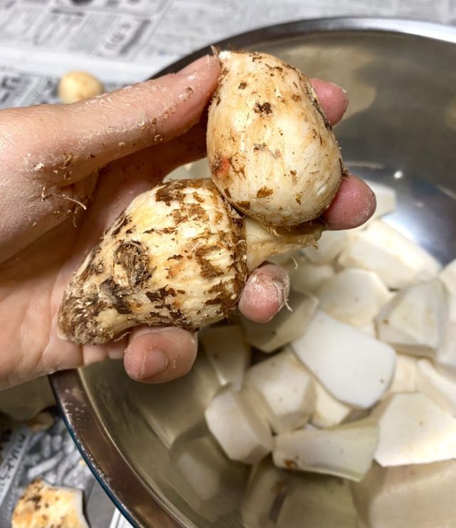 【一日一作プロジェクト】「わくわく芽」を作った。父が庭から収穫した「里芋」を