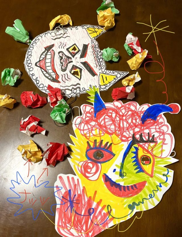 【一日一作プロジェクト】コラージュアート「内己(うちおのれ)」を作った。節分を祝って豆まき。のはずが、豆がないので