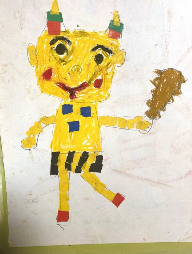 なのだ。うれしい〜。そういえば、整理で出てきた小さい頃に描いた「鬼」の絵(写真)。それがなんと真っ黄色で、まさに今日の私やん(笑)。