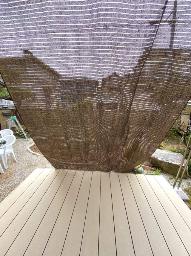 これをなんとか考え出さねば〜。さらに。東の窓、ウッドデッキスペースでも、昨日とは違うバージョンで試してみる。って、書くと簡単だけど