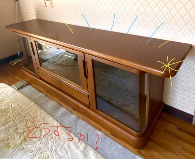 リビングにずっと置かれている巨大な収納家具(写真)。感じはいいのだけど、とにかくでかい。横幅2メートルちょっと。中は空なので