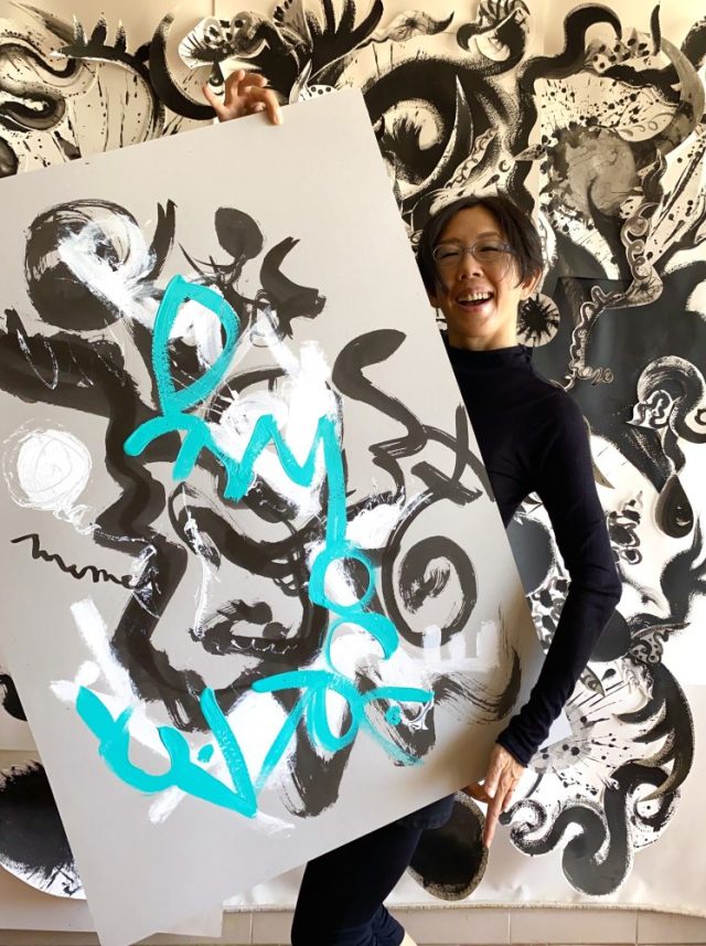 「遊異結」「ARMONÍA(ハーモニー)」「PAZ(平和)」「DEMOCRACIA(デモクラシー)」文字がひとつに。