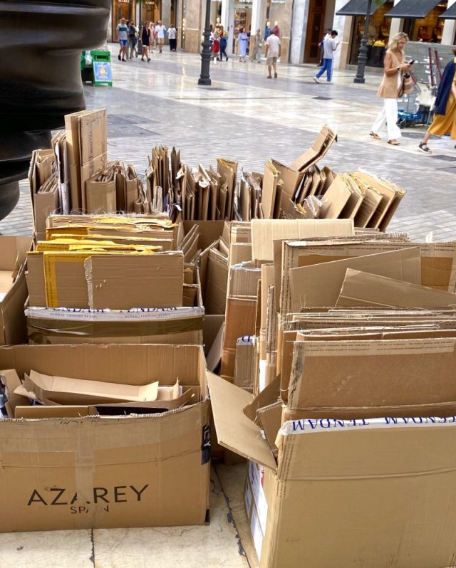 こんなにまとまって(写真)。あぁあ、このダンボール箱を全て引き取って、大きな作品を作りたい〜。横目で眺めながら、次の手続きへ早足で向かう。