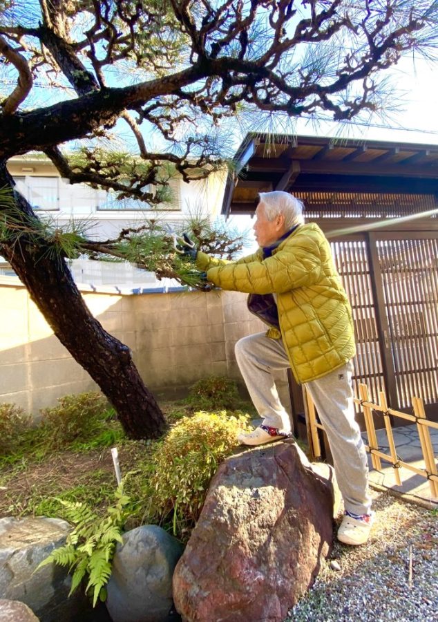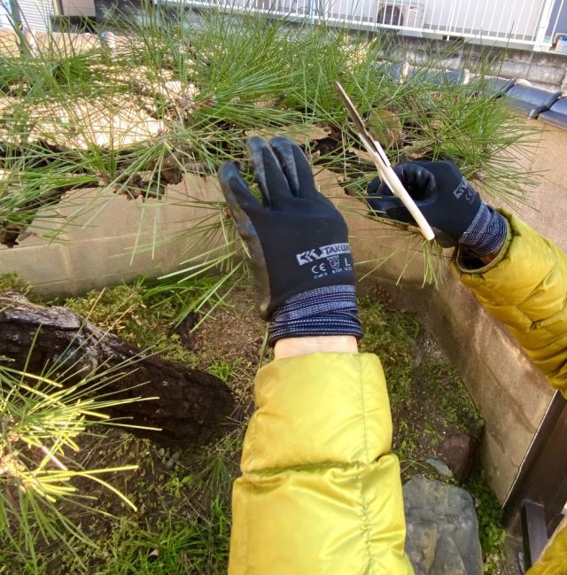 「松を剪定し始めた」