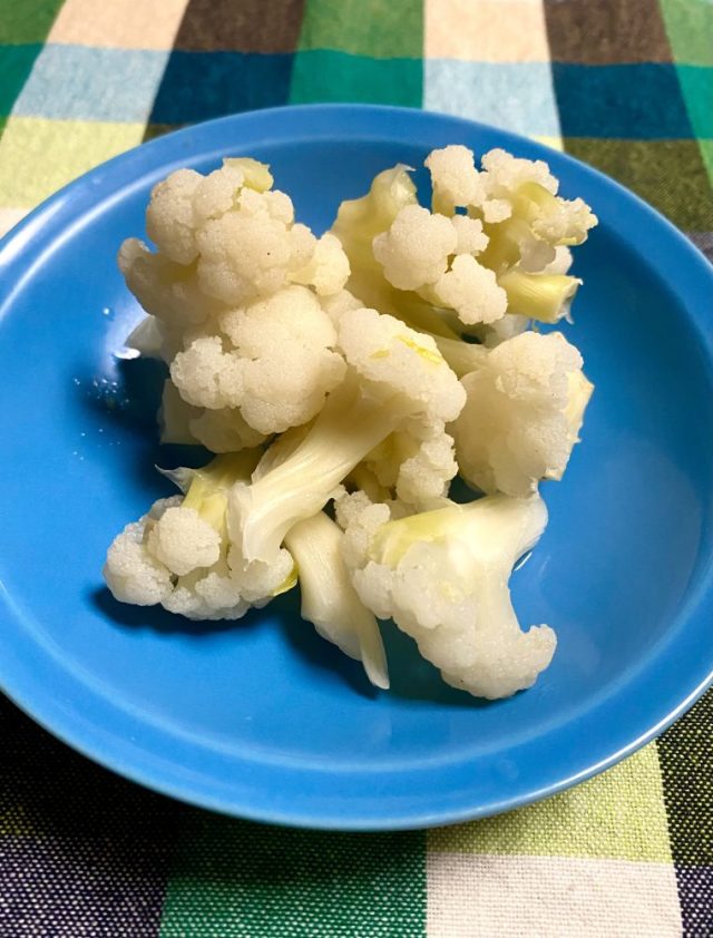 ちゃんとカリフラワーの味。初めて自分で作ったことに感動し、味付けなしでじっくり味わう。父はシチューにどかんと入れていたけど、もったいなくて〜(←作るとこうなる)。
