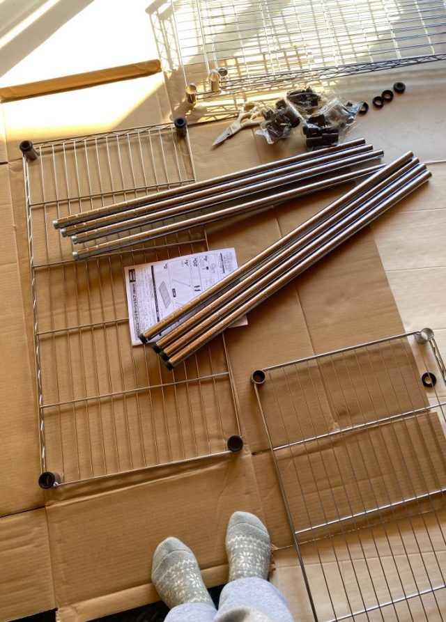 さて。ホームセンターでスチール棚を追加購入。さっそく組み立てる〜。今回の家のインフラ整備で、かなり道具が増えてきたので