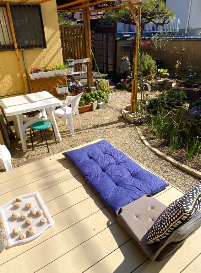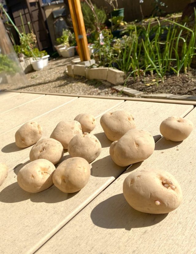 今年もやるぜ〜。お隣のNさんが、植え付ける2週間前から「ジャガイモを日に当てて、芽出しをしといてね」と、お声をかけてくれた。まさに太陽教。ジャガイモと共に日光浴や〜(笑)。