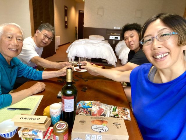 暑いもんね〜(笑)。今回の旅の目的は、ホテルでひたすらのんびり。観光なし。外出なし。飲んで食べて、おしゃべりしてゲームして、心ゆくまで温泉につかるゆったりプラン。