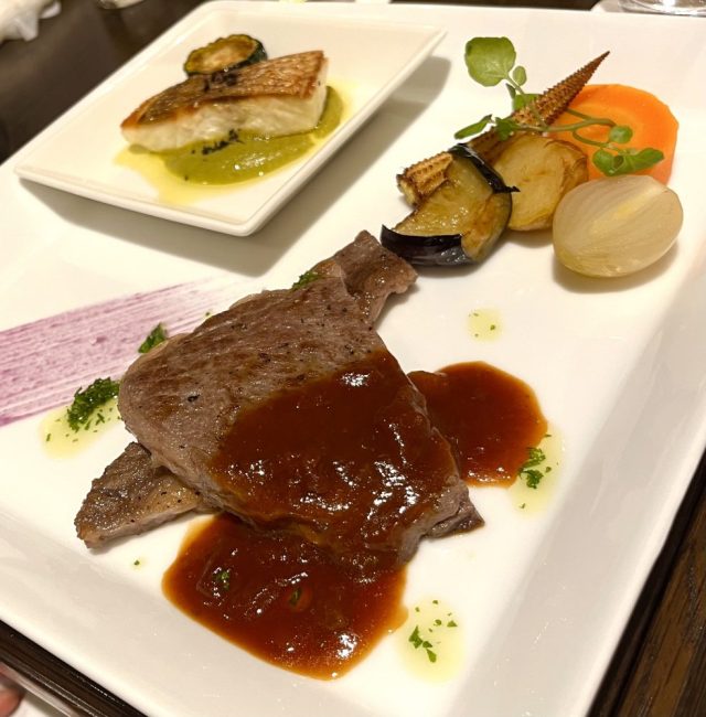 と教えてもらう。「今さら変更できるの?」「できます」「おぉお〜」。だったら気兼ねなく。せっかくだから、デザートも赤ワインで。それもフルボディの(笑)。