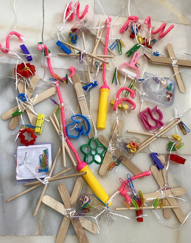 というのは、心身の消耗が激しい。なにかと不便だし、どこか中途半端。たえず「いきずり感」がつきまとう。半日かけて、20個ほどおもちゃを作り、さっそくクリニックへ。