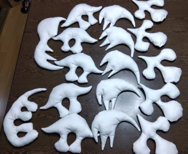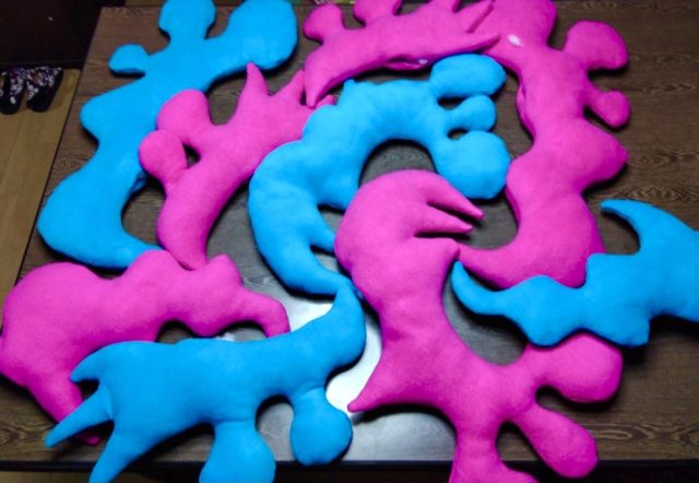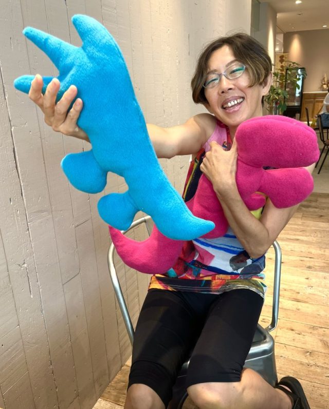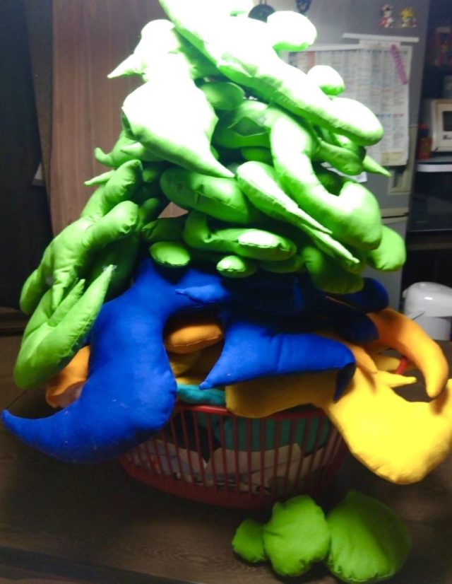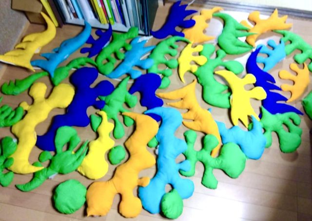 ペイント物を入れることで、アクセントがつきそう。はたして、どんな作品に。部屋の中が、どんどん「ぬいぐるみ売り場」みたいになっていく。