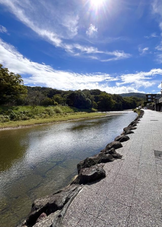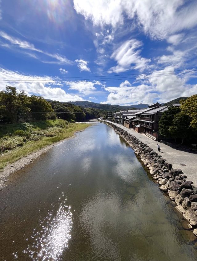 初めて食べた赤福氷。さっぱりとした甘さがいい。中から餅と餡が〜。私はお土産にはあまり興味がないので、川沿いを散策。木造建築を眺めながら、のんびり深呼吸。