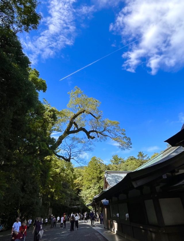 私の中に、ある構図が浮かび上がる。今日感じたことを絵にしたら、どんな作品になるだろう。今すぐ筆を握りたい衝動を抑えながら、内宮を後にする。