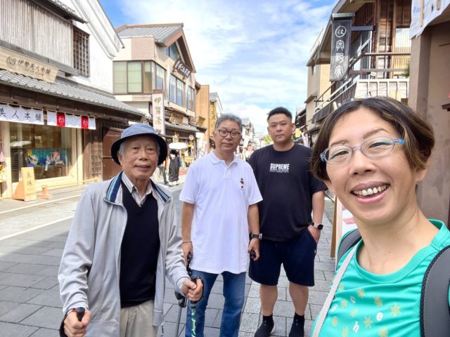 おかげ横丁の喧騒の中、お土産袋を持った3人と合流。伊勢うどんを食べ、近鉄で名古屋へ。あっという間の1泊2日。秀兄ちゃん、あっ君、お父さん、楽しい旅をありがとう!