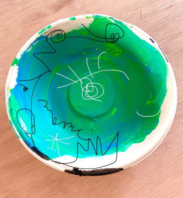【一日一作プロジェクト】ラクガキ皿「PAZAMOR(ぱさもーる)」を作った。家族旅行・3。朝起きると、目の前の海では