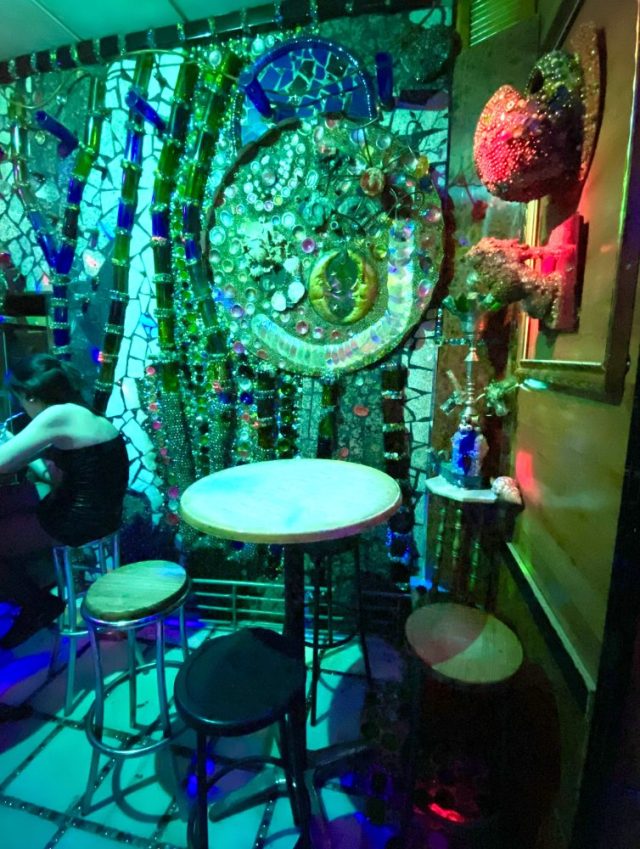 「ボトルやガラスで作られたバルがあるよ」「オーナーが自分で内装してるんだよね」「へぇ〜見てみたい!」
