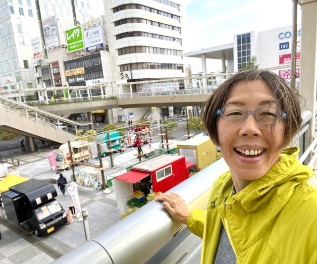 【一日一作プロジェクト】「もも衣」冬の3点セットを制作中。豊橋駅前の広場を通ったら、
