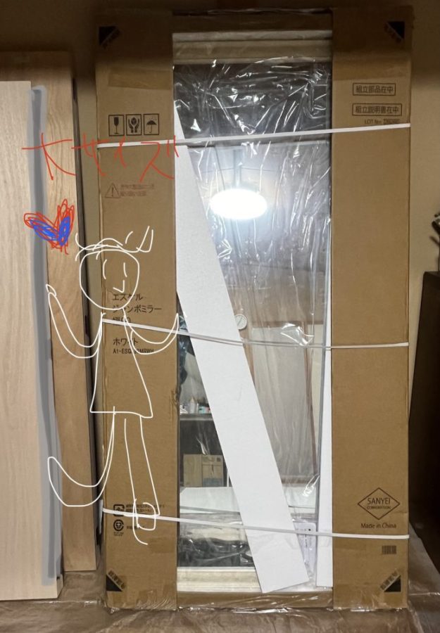 力持ちのYさんは、あっという間に大鏡を2階へ運んでくださった。さっそく「作業室」へ設置。ここが、1番長く身を置く場所だし。ペイントの途中にひと休みがてら、
