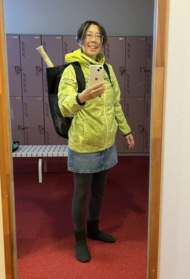 なんとか12月の打ち納めダブルスイベントに参加したい。写真は更衣室。ラケットを背負ってミニスカートで(笑)。まだ日本で50代のミニスカを見たことがない。動きやすくて大好き。