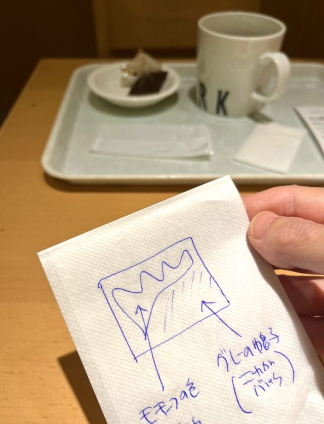 ちょうどカフェテリアでお茶していたので、紙ナフキンにちゃちゃっとメモ、写真を撮って送る(スペインでは紙ナフキンは完全にメモ用紙として使われている)。