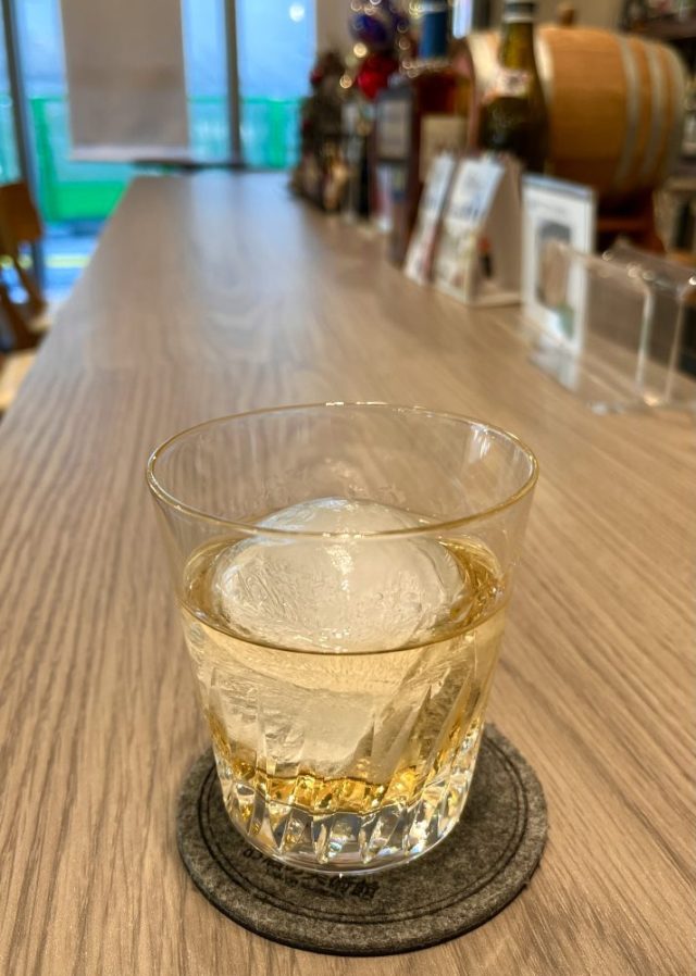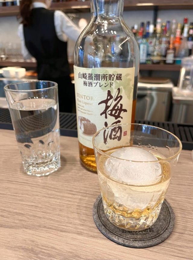 おお〜。時間前だけれど、カウンターへ案内してくださる。さっそく「梅酒」を注文。ボトルの中で輝く琥珀色の梅酒、ガラスに浮かぶ丸い氷、サーブしてくださる手つきも美しい。カウンター越しに、しばし女同士でおしゃべり。