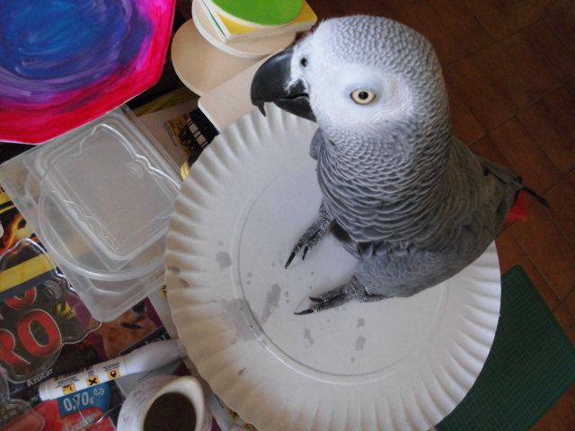 ももギャラリー2014 紙皿画 2014-11-07 momoquimidori コメントする 「ももギャラリー」今日は「紙皿画」を紹介します。 今日のキャンバスは「紙皿」。そう、あのお菓子や料理を乗せる。 「お皿に描きたいなぁ」と思って、はたと気づいた。陶器じゃなくても紙皿がうちにあるではないか。ピアノ&バイオリン発表会のときの残りの(笑) おしおきから解放されたオウムがさっそく遊びに来る。紙皿を汚さないように! 「紙皿に乗らないでー」と、皿ごと持ち上げたらうれしそーな表情。こういう遊びじゃないんだけど。 2014-11-07 momoquimidori コメントする