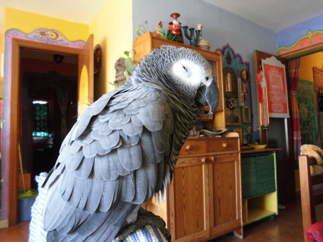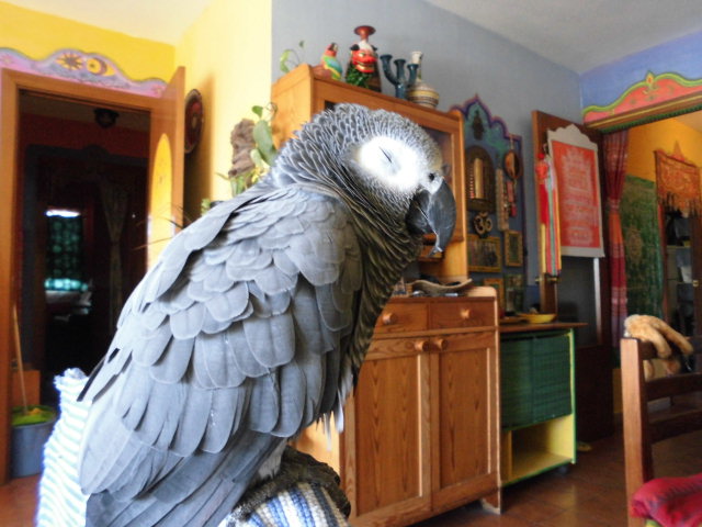 テレビの番組で、この種類のオオムが紹介されました。大府のスーパーかな?ホームセンターかな?みたいなところのオオムがとても頭が良い。店員さんのモノマネしてお話をするの。