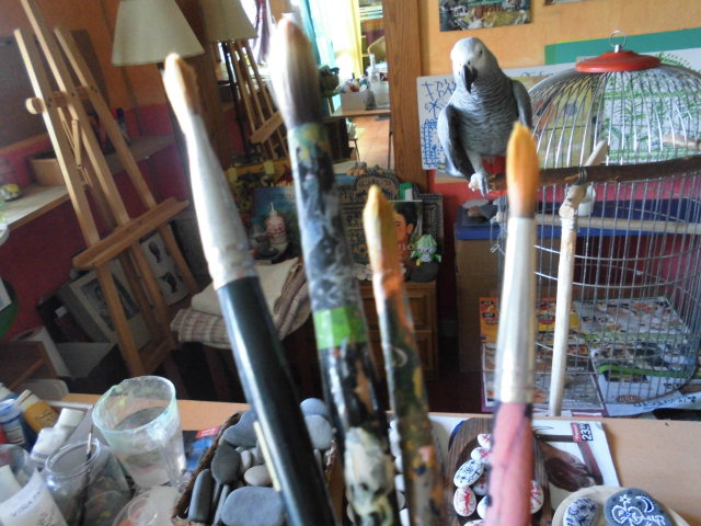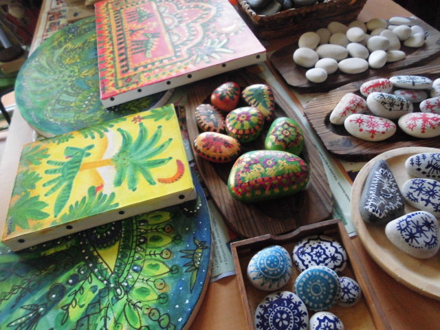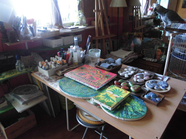 今はキャンプ用の折り畳みテーブルが下に入ってるだけなので、描くと揺れて作業がしづらいー。