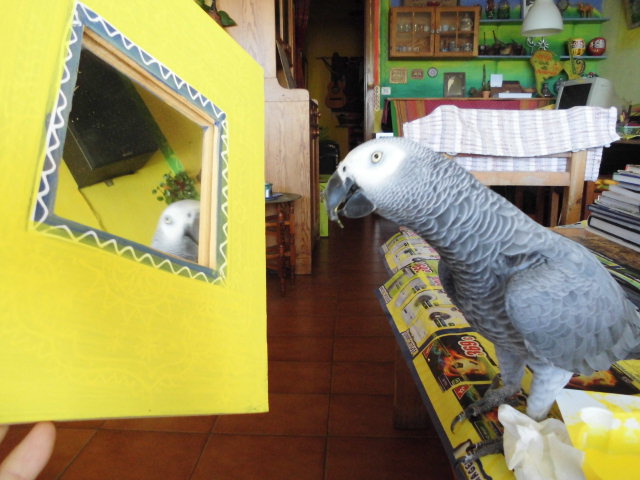 鏡を眺めるのも大好き。うっとり~。つつくのも好き。おかげでうちの鏡の半分近くは、襲撃されてボロボロ。