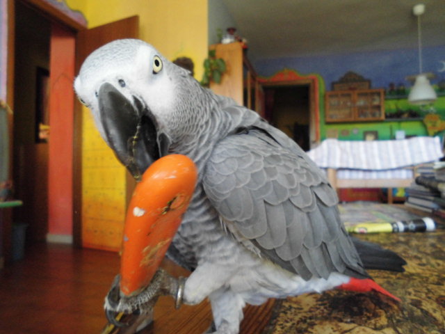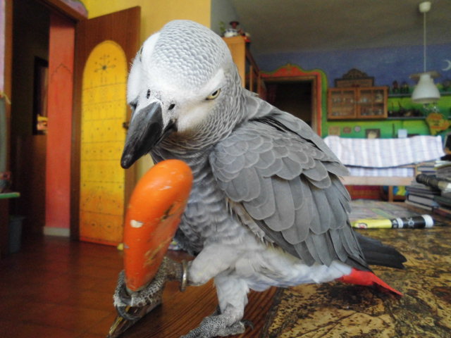 あのー、そろそろ離してくれないかな。使うんだけど。引っ張ってみるが、まるでダメ。オウムの足の力はすごいのだ。