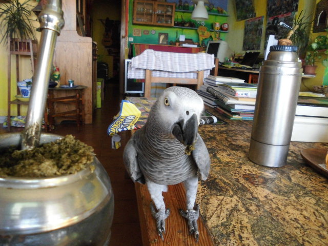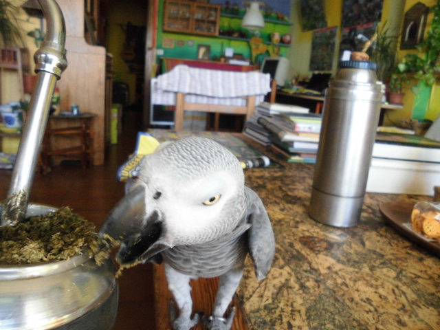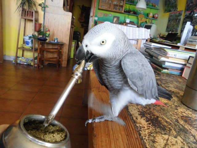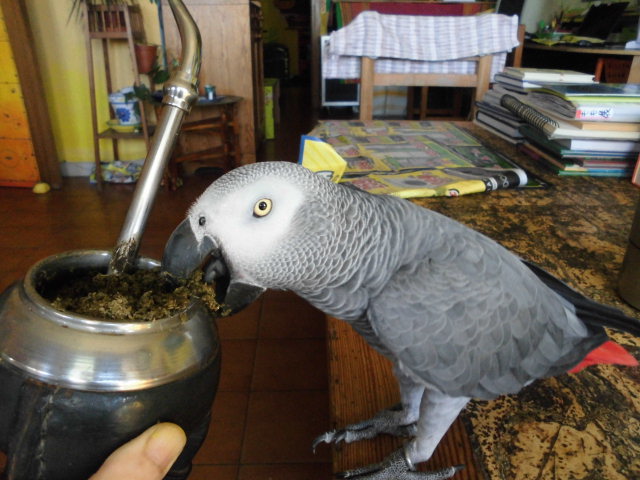 オウムは、マテ茶が好きなのだ。