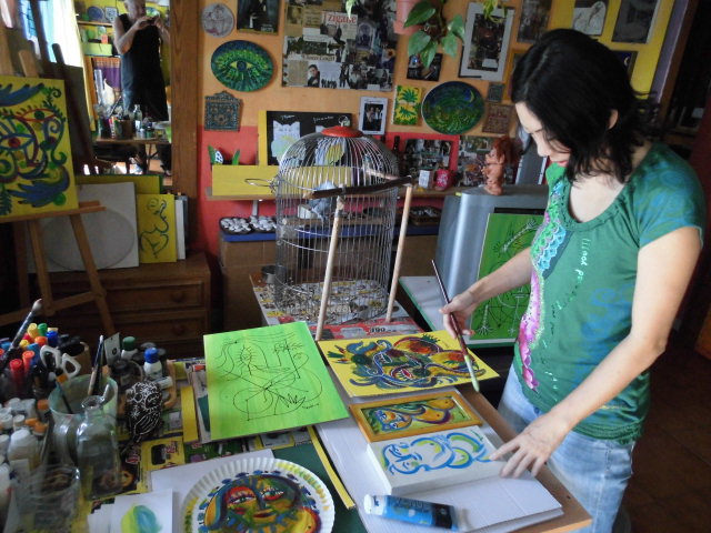 立って描いたり。