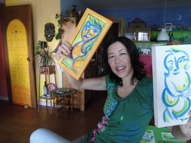 座って描いたり