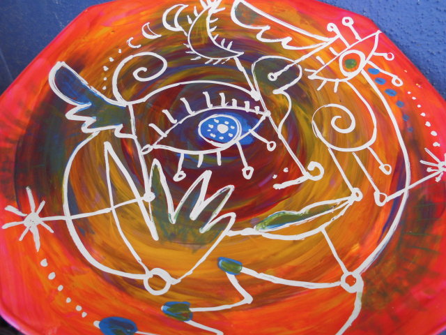 ももギャラリー2014 青目玉の皿絵 2014-11-22 momoquimidori コメントする 「ももギャラリー」今日は「青目玉の皿絵」を紹介します。 お皿に描きました。もとは引っ越しした友人が残していった白いお皿。まだ5枚ほどあります。ありがとう!使ってます。 ただいま日本滞在中でにつき、パソコンなし生活をおくっております。リアルタイム入力ができず、申し訳ありません。日本の滞在記はスペイン帰国後に、改めて紹介させていただきます。「ももギャラリー」が続きますが、よろしくおつきあいください。 2014-11-22 momoquimidori コメントする