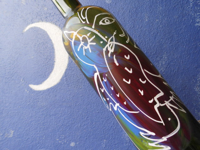 ももギャラリー「ボトルアート」 縦長スペースがいいボトルアート 2014-11-10 momoquimidori コメントする ももギャラリー「ボトルアート」久々に登場!何にでも描きます(笑)ボトルの立体感が好き。平面とはちがう奥行感がおもしろい。 縦長なのも、いい。2対8の、あまり洋画にはない比率。日本の掛け軸もそうだけどこの超縦長のスペースに凝縮した世界がおもしろい。 「僕、もものアートに貢献してるよね」ワインボトルを持ち上げながらべラが深々とうなづく。「ももは外、僕は中」って、福は内? 2014-11-10 momoquimidori コメントする