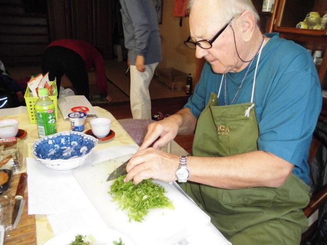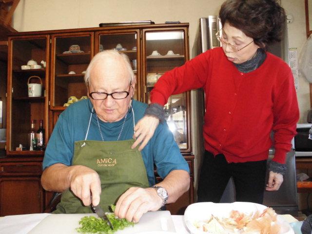 今日はランチに「パエジャ」を作る!と、べラシェフが決め、エプロン姿で登場。