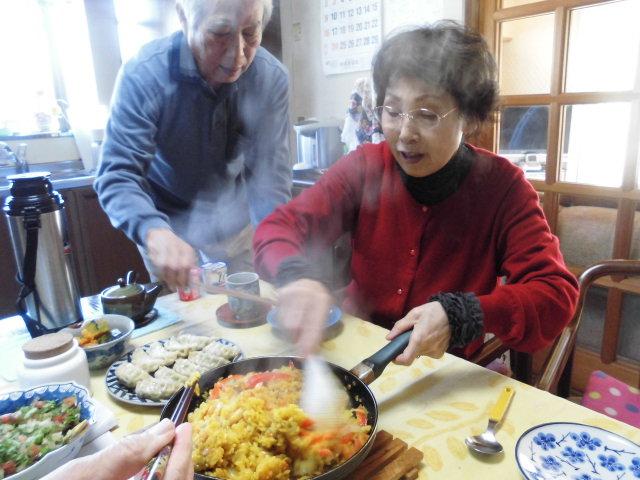 出来立て、ほかほかのパエジャ。「いただきまーす!」「ありがとうね!」