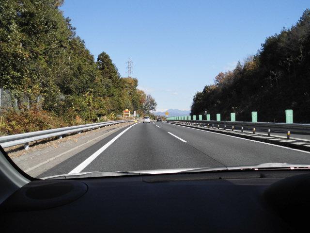 愛知県から岐阜県に入ると、紅葉が目立ってくる。岐阜は母のふる里。確か岐阜と長野はニッポンでも有数の山岳県。恵那山、御嶽山・・・ときおり、視界の端に、雪を頂いた山脈が姿を現す。長野県の山々かもしれない。雄大じゃ~。