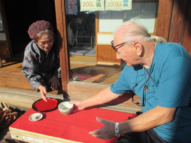 「抹茶」に興味を抱いたべラ。「あれ、もしかしてセレモニア・デ・テ(茶道)の?」「そう」「飲んでみたい」民家のお母さんがたててくださった抹茶を、うれしそうに受け取る。「苦いですよ」それを伝えると「そうかな?おいしいよ」「よかったー」「でも少しだね、おかわりっ!」抹茶をおかわりする人なんて、いるのか。コーヒーじゃないんだから。