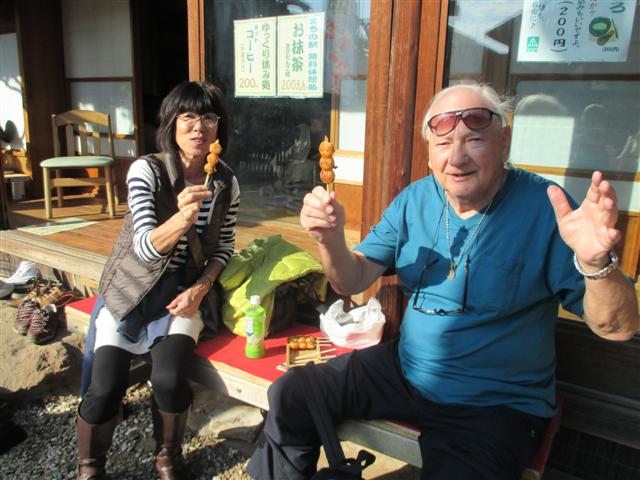 11月23日だけあり、犬山城周辺はすごい人ごみ。ランチの行列など、軽く1時間待ちであろう。「べラを連れていったいどうしたら」と慌てふためいていると、伊藤さん&中岡さんが「座れる場所、見つけたよ~!こっちこっち」