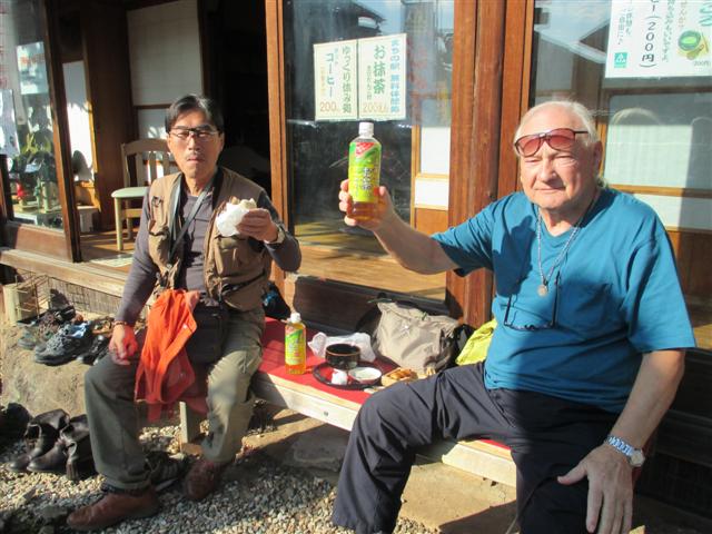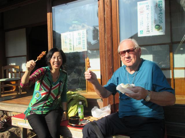 民家を無料休憩場にしてくださっているお宅を発見(写真左)!ありがとうございました。べラを縁側に座らせておいて、お昼の調達に出かける。