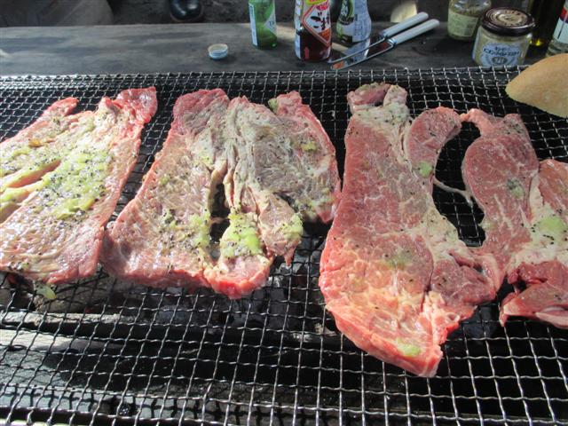 実はこれ、大野さんが前日から、お肉の下味付けにお庭のキウィを、すり込んでおいたくださったのだ。おいしそ~。