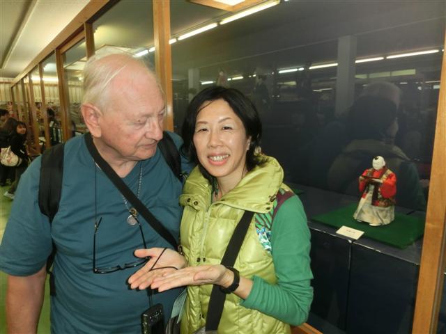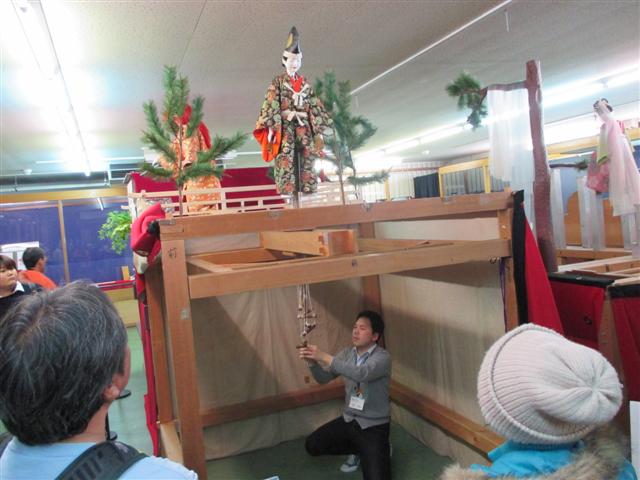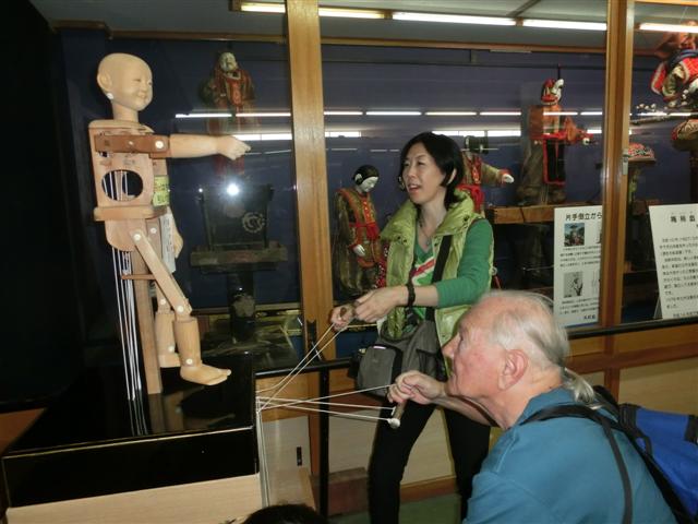 最後はからくり人形の「体験コーナ」で、実際に人形を動かしてみる。思ったより難しいー。